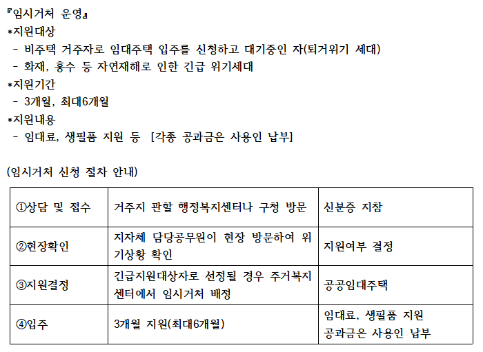 주거복지 자료실 광주광역시 종합주거복지센터 임시거처 지원사업 지원자격 및 관련 서류안내 페이지 정보 조회 92회 작성일2026-01-05 본문 첨부파일 1mejhxwih_20260105130706.zip [77717 byte] 임시거처 지원자격.png [29120 byte]